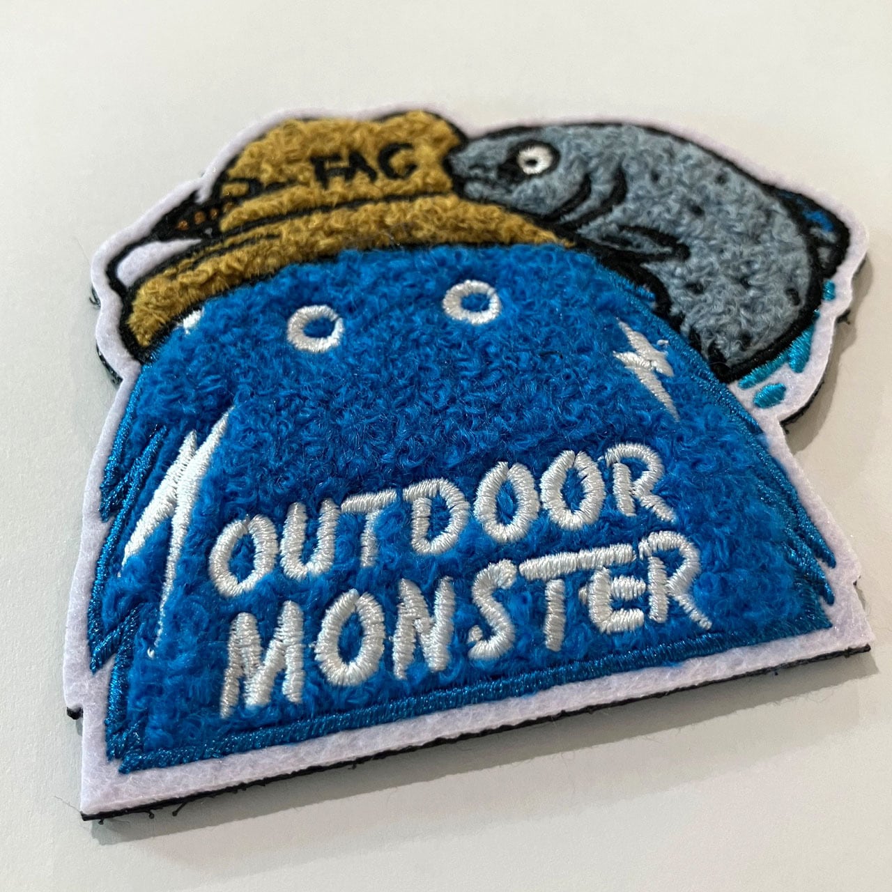 Fish and Camp×アウトドアモンスターのモフモフワッペン。